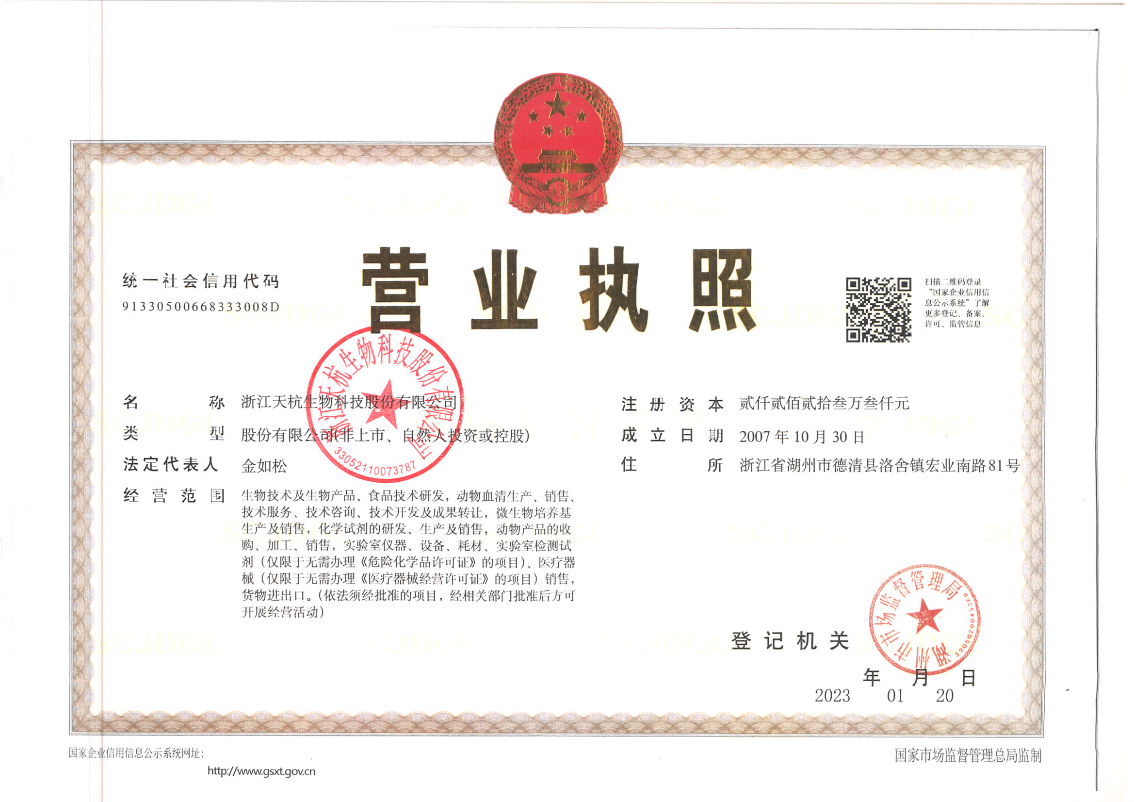 浙江天杭生物科技股份有限公司