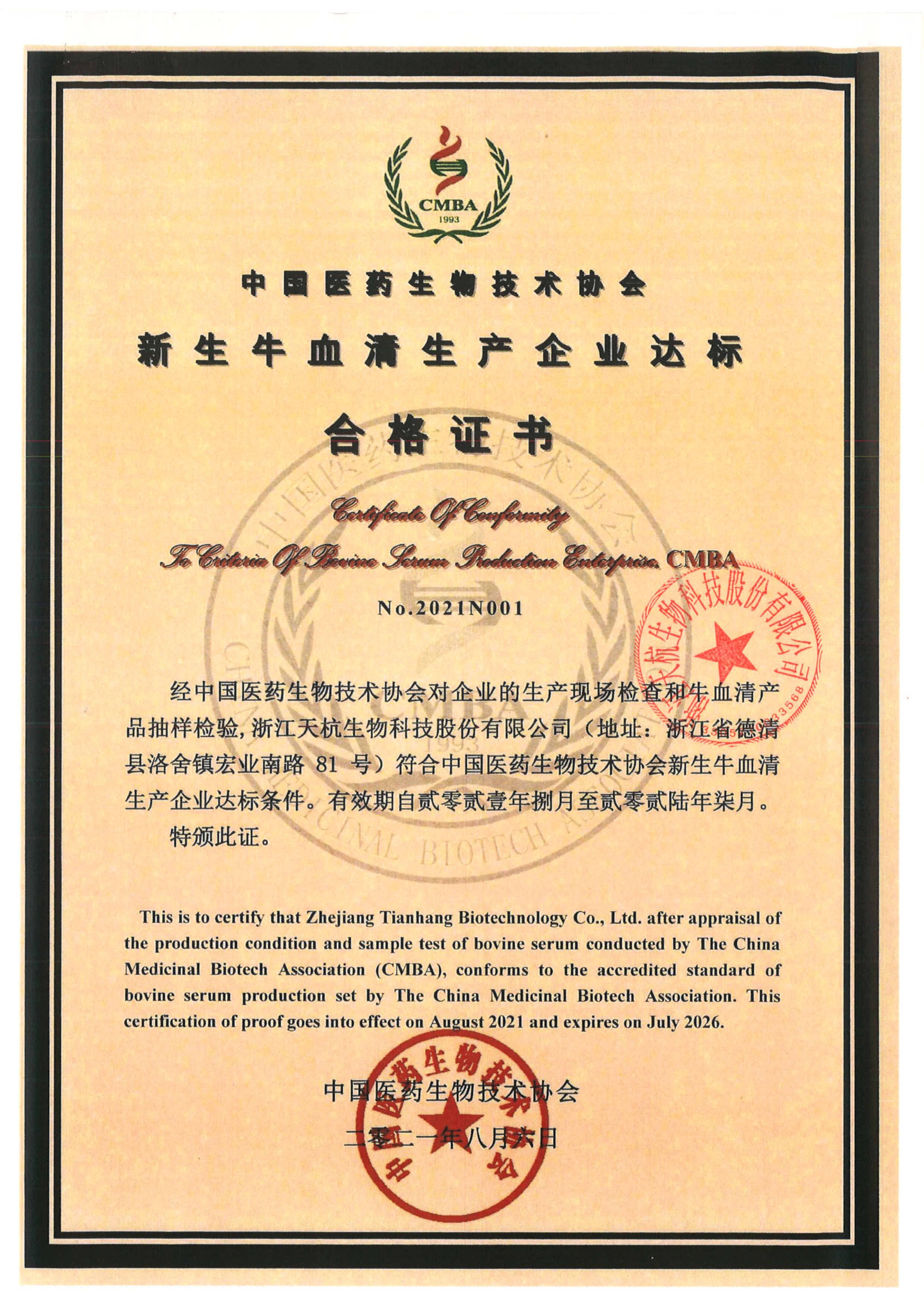浙江天杭生物科技股份有限公司是由杭州四季青生物工程材料有限公司(成立于1984年)斥资创办的一家专门从事生物原辅材料研究、开发与生产的企业,是牛血清领域的国内领导者。公司总部位于山清水秀的浙江省德清县洛舍镇,并在杭州设有办事处。浙江天杭生物科技股份有限公司总投资2500多万元,厂区占地面积10000m2,建筑面积7200m2,其中生产净化车间面积1500m2,质量检验净化车间600m2,冷库面积600m2。 公司主要生产经营胎牛血清、新生牛血清等牛血清系列品牌产品以及培养基产品,公司凭借专业的技术团队和销售团队,使四季青产品的销售网络遍布全国,主